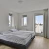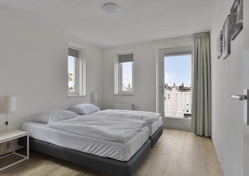 Das komfortable Schlafzimmer verfügt über ein Doppel-Boxspringbett und bietet direkten Zugang zum Balkon. Von hier aus genießt man einen wunderschönen Blick auf den Yachthafen – aufwachen mit Aussicht aufs Wasser!