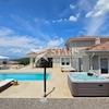 -Außenbereich: Beheizter Pool (35 m²) mit Keramikverkleidung und Wasser-Elektrolyse, Jacuzzi für 6 Personen, Sonnenliegen, Grill, steingepflasterte -Terrasse und ein Esstisch aus slawonischer Eiche.
