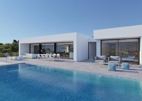 NEU GEBAUTE LUXUSVILLA IN CUMBRE DEL SOL~~Neubau einer modernen Villa im Cumbre del Sol Resort, einer exklusiven Gegend mit großen Luxusvillen, die einen eleganten Blick auf das Mittelmeer bieten.~~New Build Villa ist für Genuss und Erholung konzipiert. Auf dem mehr als 1.300 Quadratmeter großen Grundstück finden sich alle Extras dieser modernen Luxusvilla. Eine Villa mit 3 Schlafzimmern, 5 Bädern und Parkplätzen für 4 Autos: 2 Plätze unter einer überdachten Veranda und 2 in einer abgeschlossenen Garage.~~Das Hauptschlafzimmer verfügt über ein eigenes Bad und einen geräumigen begehbaren Kleiderschrank, von dessen Veranda aus Sie das Mittelmeer in seiner ganzen Schönheit bewundern können. Die beiden anderen Schlafzimmer teilen sich eine wunderbare Terrasse und einen zusätzlichen Raum, der als Freizeitraum oder Büro genutzt werden kann. Beide haben ein eigenes Bad.~~Für zusätzlichen Komfort befinden sich Wohn-/Esszimmer und Küche auf der gleichen Etage. Die Küche ist durch eine Insel mit dem Wohnzimmer verbunden, so dass Sie nichts von Ihren Freunden trennt. Große Fenster führen auf die Sonnenterrasse mit Infinity-Pool, der mit dem Meer verschmilzt.~~Die Exklusivität dieser modernen Villa liegt in der unteren Etage, die für die Unterhaltung der ganzen Familie gedacht ist. Hier befinden sich ein privater Fitnessraum mit Bad und Sauna sowie ein Kinoraum. Das Ganze ist mit einer Veranda ausgestattet, unter der Sie sich inmitten der Ruhe des Meeres entspannen können.~~Wenn Sie auf der Suche nach einem etwas anderen Zuhause sind, bietet die Villa den zusätzlichen Raum, der Ihren Alltag zu etwas Besonderem macht.