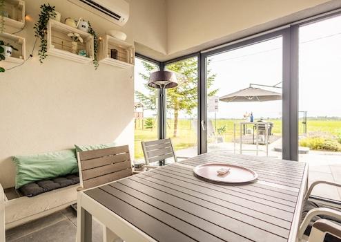 • Esszimmer im Wintergartenstil, das auch als Zimmer genutzt werden kann