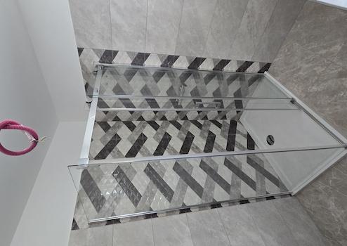 fürdőszoba, káddal, tusolóval és szaunával (a szauna beépítése folyamatban), közlekedő, előtér, terasz.