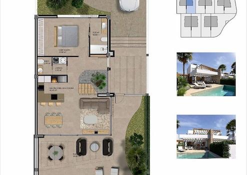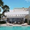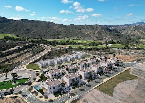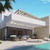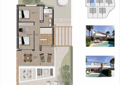 Diese kleine Wohnanlage besteht aus 22 Doppelhaushälften mit jeweils 2 Etagen, eigenem Parkplatz im Freien, privatem Pool, Terrasse und Dachterrasse. Die Häuser bieten einen sehr schönen Ausblick und die großen Fenster sorgen für eine optimale Beleuchtung der Innenräume.