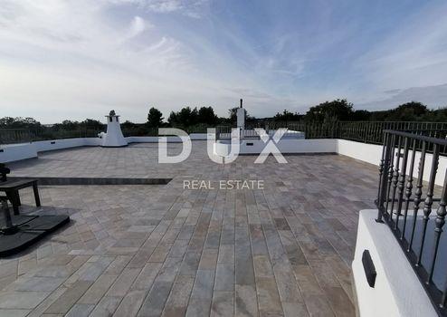 Nur wenige Minuten von Pula entfernt befindet sich dieses besondere, einzigartige Haus mit 217 m² Wohnfläche. Es besteht aus Eingangshalle, Küche, Esszimmer, Wohnzimmer, Bad, WC, zwei Schlafzimmern und einer überdachten Veranda mit 25 m². Das Haus hat ein Flachdach, das über eine Außentreppe erreichbar ist, und ist als geräumige Terrasse mit herrlichem Blick auf die Bucht von Fažana und die Brijuni-Inseln angelegt. Es besteht die Möglichkeit, einen Whirlpool zu installieren. Das Haus ist mit sorgfältig ausgewählten rustikalen Möbeln mit modernen Details eingerichtet. Den zentralen Teil des Wohnzimmers nimmt ein großer Kamin ein, der in den Wintermonaten als eine der Heizmöglichkeiten genutzt wird. Es gibt außerdem eine Gaszentralheizung und drei Klimaanlagen. Hinter dem Haus befindet sich eine große Garage mit einem 59 m² großen Weinkeller. Der weitläufige Garten ist mit 35 bis zu 250 Jahre alten Olivenbäumen geschmückt. Neue Keramik wurde installiert und die Fassade wurde im September 2022 erneuert. Das Haus wird möbliert verkauft. Das gesamte Grundstück ist von einer Mauer umgeben, die den Eigentümern Privatsphäre bietet. Die neuen Eigentümer haben die Möglichkeit, einen Swimmingpool zu bauen. Das Anwesen ist alarmgesichert und mit Kameras ausgestattet. Aufgrund der Lage und des faszinierenden Meerblicks ist dies eine ideale Investitionsmöglichkeit für die Vermietung während der Touristensaison, aber auch für diejenigen, die ein ideales Zuhause abseits des Stadttrubels und dennoch in der Nähe aller Annehmlichkeiten suchen. Eigentum ohne Belastungen.