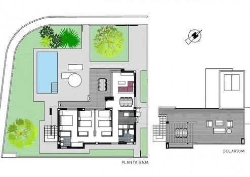 Die Villen werden auf Grundstücken von bis zu etwa 380m² mit hochwertigen Materialien gebaut. Die Häuser befinden sich auf einer Ebene mit Terrassen im Erdgeschoss und einer großen Sonnenterrasse im ersten Stock, die es ermöglicht, alle Sonnenstunden zu genießen, jeden Tag des Jahres.