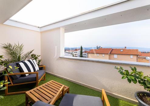 Insel Krk, Malinska, möblierte Wohnung mit Garten und Meerblick, neu renoviert!