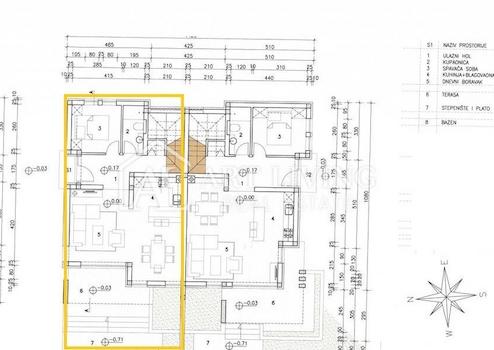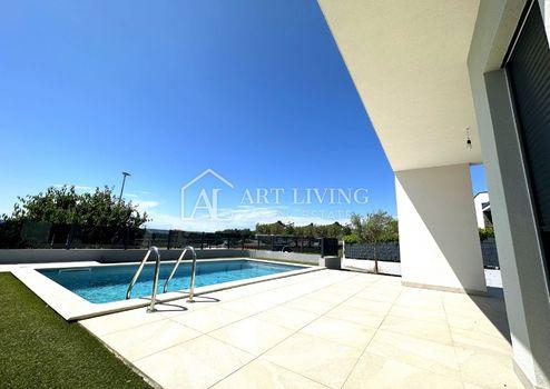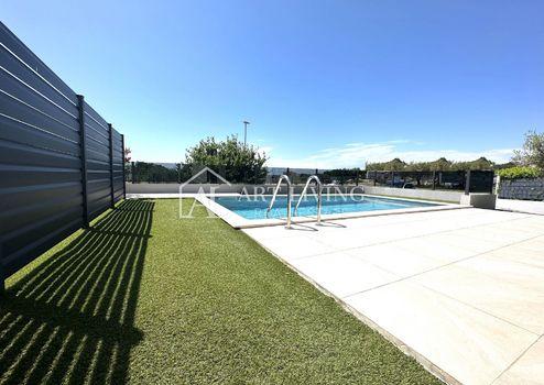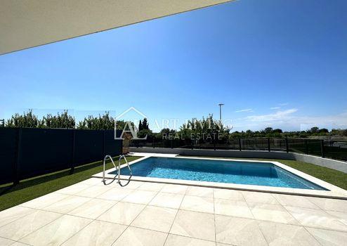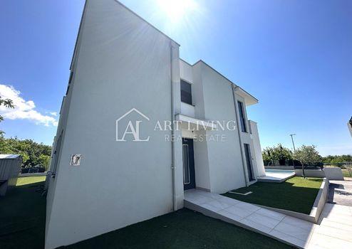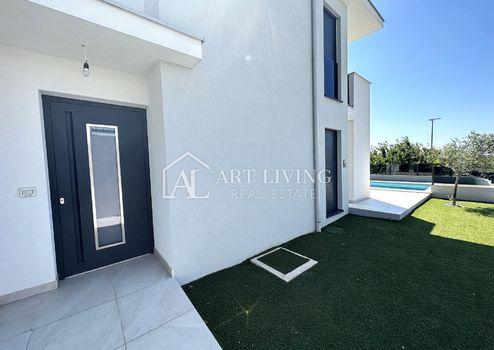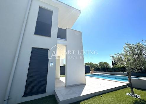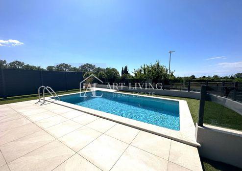 Zum Verkauf steht eine moderne Doppelhaushälfte mit Pool, Neubau, in ruhiger und schöner Lage, nur wenige Autominuten vom nahegelegenen Lovrečica und nur 1,3 km vom Meer entfernt.