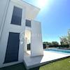Die Villa ist mit hochwertigen Materialien gebaut. Im Erdgeschoss, Obergeschoss, auf der Terrasse und den Balkonen wurden Holzoptik-Keramikfliesen verlegt. Die Fenster bestehen aus dreifach verglastem PVC in Anthrazitfarbe. Die weiße Fassade ist mit Naturstein kombiniert. Die Klimaanlage und norwegische Infrarot-Paneele sorgen für Heizung/Kühlung.