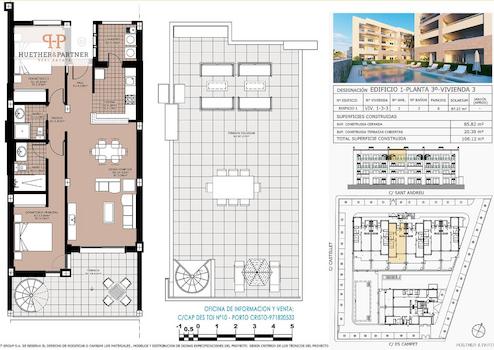 Dachterrasse 87,27 qm und Terrasse 20,34 qm: (Beispielwohnung 1-3-3)