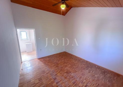 Die Wohnung befindet sich im ersten Stock, mit einer Gesamtfläche von 56 m², bestehend aus zwei Schlafzimmern, eine kleine Küche und einem geräumigen Badezimmer.