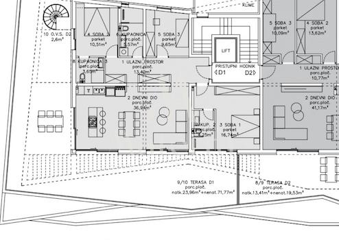 Die Wohnung D1 befindet sich im dritten Stock eines modernen Wohngebäudes und überzeugt durch einen funktionalen Grundriss sowie großzügige Außenbereiche. Netto-Wohnfläche: 145,87 m².
