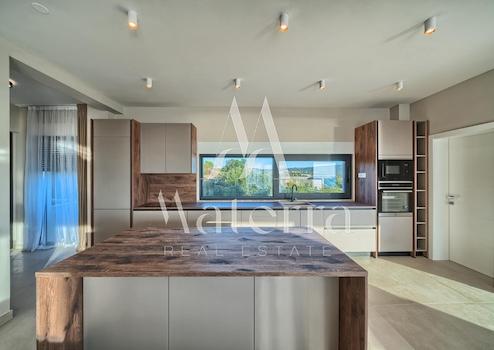 Zum Verkauf steht eine moderne Luxusvilla, die in einer ruhigen Gegend von Primošten liegt und einen wunderschönen Meerblick bietet. Diese hochwertig gestaltete Immobilie erstreckt sich über 225 m² auf drei Etagen, wobei die Gesamtfläche des Grundstücks 600 m² beträgt. Die Villa wird voll möbliert verkauft. Die Fertigstellung des Baus ist für Mai 2025 geplant.