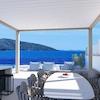 Die Wohnung besteht aus einem geräumigen Wohnzimmer mit Küche und Essbereich im offenen Konzept, das auf eine Terrasse mit Meerblick führt. Es gibt drei Schlafzimmer, von denen zwei ein eigenes Bad haben. Die Zimmer sind einzigartig, da die gesamte Seitenwand aus Glas besteht, was einen einzigartigen Blick auf das Meer und die Inseln ermöglicht. Die Wohnung verfügt außerdem über ein weiteres Bad, insgesamt drei. Auf dem Dach befindet sich eine geräumige Terrasse mit privatem Pool.