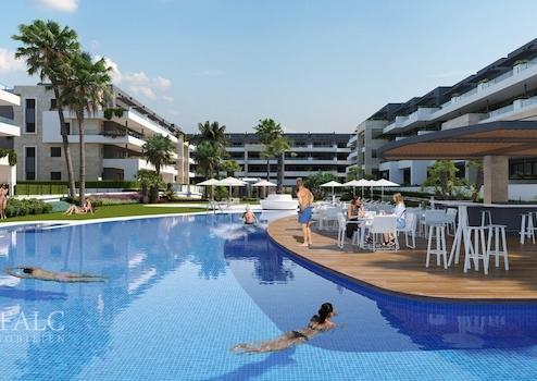 Wussten Sie, dass Flamenca Village kürzlich bei den International Property Awards in London ausgezeichnet wurde? als Beste Wohnanlage mit mehr als 20 Einheiten. Flamenca Village ist aus wirtschaftlicher und ökologischer Sicht ein effizientes Projekt. LED-Beleuchtung, Wasserflächen in Grünflächen und Regenwasser-Wiederverwendungssysteme zur Bewässerung von Gärten in Gemeinschaftsbereichen sind einige seiner Merkmale.