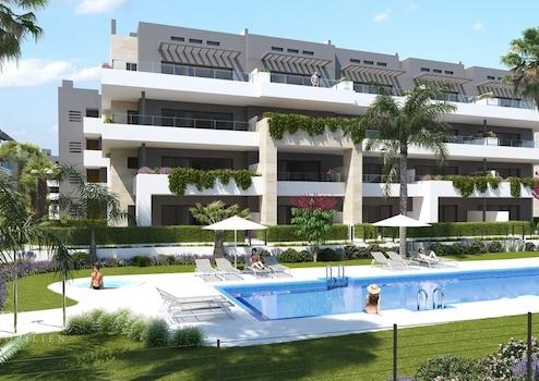 Wussten Sie, dass Flamenca Village kürzlich bei den International Property Awards in London ausgezeichnet wurde? als Beste Wohnanlage mit mehr als 20 Einheiten. Flamenca Village ist aus wirtschaftlicher und ökologischer Sicht ein effizientes Projekt. LED-Beleuchtung, Wasserflächen in Grünflächen und Regenwasser-Wiederverwendungssysteme zur Bewässerung von Gärten in Gemeinschaftsbereichen sind einige seiner Merkmale.