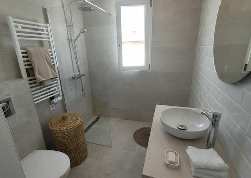 Das charmante Haus bietet auf 116 m² Wohnfläche, verteilt auf zwei Etagen, viel Platz und ein gemütliches Ambiente. Mit zwei hellen Schlafzimmern und zwei hochwertigen en-suite Bädern ist es ideal für komfortables Wohnen. Die Südausrichtung sorgt für eine angenehme, natürliche Lichtdurchflutung den ganzen Tag über. Genießen Sie entspannte Stunden auf der privaten Terrasse oder auf dem Balkon mit Blick auf das malerische Dorf.