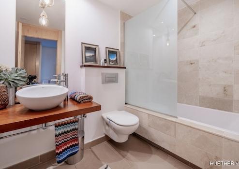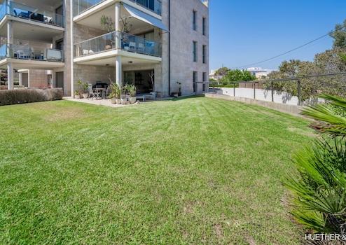Die Wohnung überzeugt durch einen offenen Wohn- und Essbereich, eine separate Küche, eine praktische Waschküche sowie zwei helle Schlafzimmer mit Einbauschränken und zwei moderne Badezimmer, darunter ein komfortables en-suite. Das Highlight ist der private Garten – eine grüne Oase zum Entspannen, Sonnenbaden oder für gesellige Treffen im Freien auf der überdachten Terrasse.