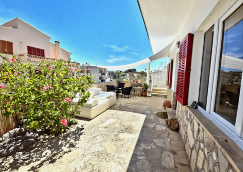 Eine private Terrasse lädt zum Frühstück im Freien ein – und die riesige Dachterrasse schenkt Ihnen spektakuläre Sonnenuntergänge, absolute Privatsphäre und einen traumhaften Blick über Portocolom.
