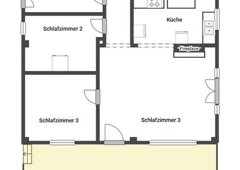Ein einladendes Wohnzimmer, eine separate Küche, ein Badezimmer sowie drei geräumige Schlafzimmer bieten Ihnen und Ihrer Familie oder Gästen viel Raum zur freien Entfaltung.