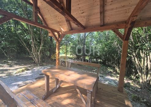 Auf dem Grundstück befinden sich ein schöner Holzpavillon, ein Grillplatz sowie ein Parkplatz – ideal für Erholung und Entspannung in der Natur.