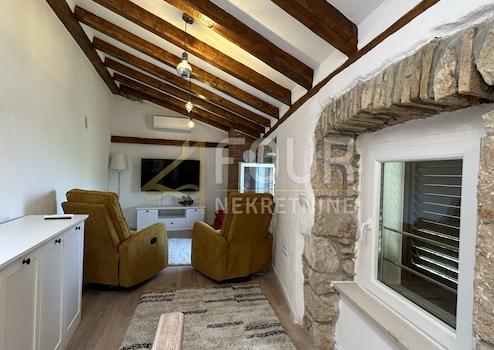 Wir bieten ein renoviertes Reihenhaus aus Stein mitten im Zentrum der Altstadt von Omišalj, 200 Meter Luftlinie vom Meer entfernt.