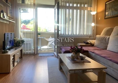 Der Schlafbereich ist durch eine Tür vom Wohnbereich getrennt, was Ruhe und Privatsphäre ermöglicht – besonders praktisch für Familien mit Kindern oder für Menschen, die von zu Hause arbeiten. Die Wohnung verfügt über zwei Einbauschränke – einer in der Küche, nutzbar als Vorratsraum, und einer im Schlafzimmer. Neue Außenfenster mit Rollläden sorgen für bessere Wärme- und Schalldämmung.