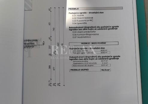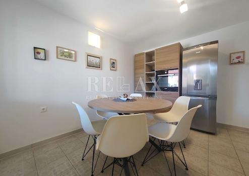 Zum Verkauf steht ein Doppelhaus im ruhigen Ort Kras auf der Insel Krk, ideal für alle, die Privatsphäre und Komfort suchen und gleichzeitig in der Nähe von Malinska sein möchten. Vom Zentrum Dobrinj sind es 2,5 Kilometer, und zum nächsten Strand sind es fünf Kilometer.
