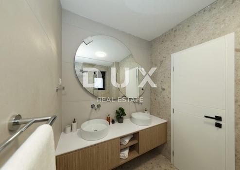 Nur wenige Autominuten von der Insel Pag und eine halbe Stunde von Zadar entfernt, steht im ruhigen Küstenort Rtina eine moderne und voll möblierte Zweizimmerwohnung mit privatem Garten und Whirlpool zum Verkauf. Diese Immobilie ist eine ideale Gelegenheit für alle, die ein möbliertes Ferienhaus, eine touristische Investition oder ein ruhiges Leben am Meer in einem neueren Gebäude und einer hochwertig gestalteten Wohnfläche suchen. Die Wohnung befindet sich im Erdgeschoss eines Neubaus und verfügt über einen eigenen Eingang und einen umzäunten Garten, der absolute Privatsphäre bietet. Sie ist modern eingerichtet, mit Schwerpunkt auf Komfort und Funktionalität, und wird voll möbliert verkauft – bezugsfertig ohne zusätzliche Investitionen. Der Innenbereich besteht aus zwei Schlafzimmern (eines davon mit eigenem Bad), einem Badezimmer, einem Wohnzimmer mit Zugang zur Terrasse und zum Garten sowie einer modern ausgestatteten Küche mit Esszimmer. Der Hof ist zum Genießen angelegt – mit Whirlpool, Liegestühlen, Außendusche, Grill und überdachtem Essbereich. Perfekt für einen Aufenthalt im Freien während des größten Teils des Jahres mit einem bezaubernden Blick auf das Meer und die umliegenden Inseln. Die Lage bietet einfachen Zugang zum Strand, der nur wenige Gehminuten entfernt ist, während Geschäfte, Restaurants und alle notwendigen Annehmlichkeiten leicht erreichbar sind. Die Nähe zu Pag und Zadar macht diese Immobilie strategisch ideal für ein ruhiges Leben, einen Wochenendausflug oder ein stabiles Einkommen aus dem Tourismus. Diese Immobilie stellt die perfekte Mischung aus Stil, Qualität und mediterranem Ambiente dar – eine ideale Gelegenheit für alle, die ein Leben oder einen Urlaub am Meer ohne Kompromisse suchen.