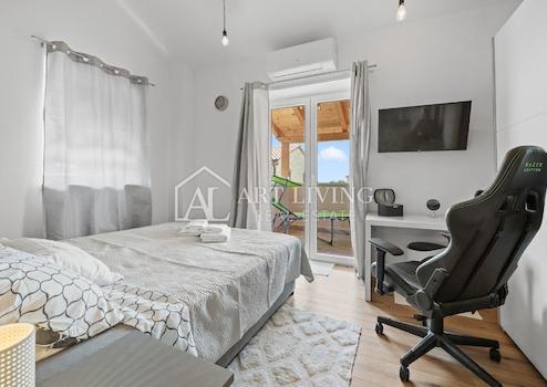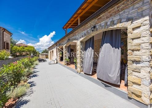 Die Immobilie wurde mit hochwertigen Baumaterialien erbaut. Das gemütliche Innere ist mit natürlichen Holzelementen gestaltet, die Fassade zeigt istrischen Stein im traditionellen Stil.