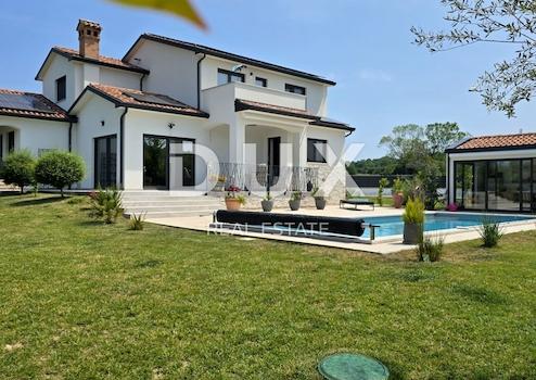 Unweit dieser malerischen istrischen mittelalterlichen Stadt steht ein einzigartige Villa mit besonderem Baustil am Dorfrand.
