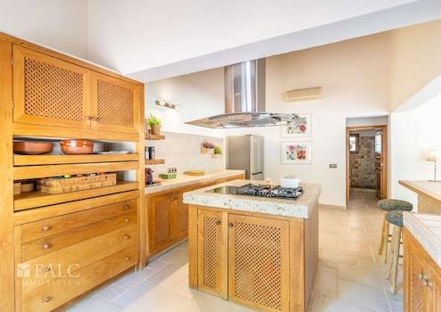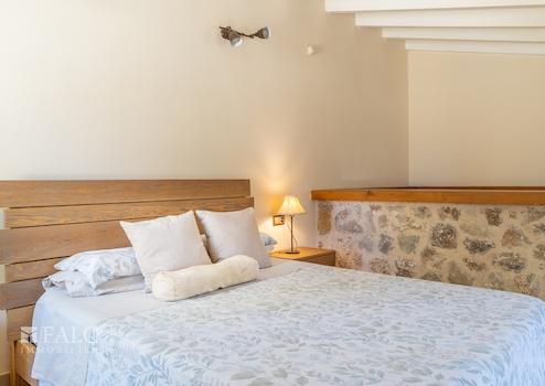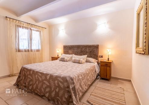 Auf zwei Ebenen verteilt sich eine bebaute Fläche von ca. 326 m², wobei rund 244 m² als reine Wohnfläche zur Verfügung stehen. Im Erdgeschoss befindet sich ein großzügiger, lichtdurchfluteter Wohn-Essbereich mit offener Küche und Kamin, zwei Schlafzimmer sowie ein geräumiges Badezimmer. Das Obergeschoss beherbergt das Hauptschlafzimmer mit eigenem Zugang zum Garten sowie ein luxuriöses Bad en Suite mit Dusche und Badewanne.