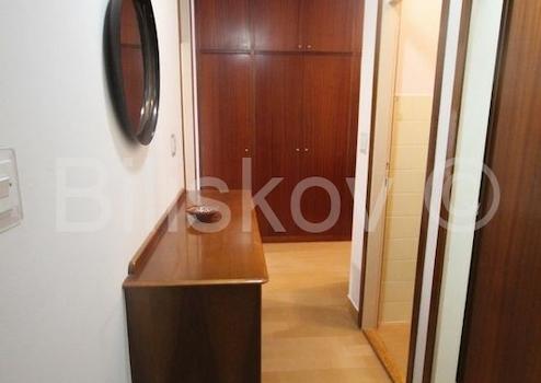 Sie besteht aus zwei Schlafzimmern, einem Wohnzimmer, einer Küche mit Esszimmer, einem Badezimmer, einem WC und einer Loggia.