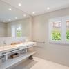 Eine geräumige Garage ist direkt mit einem weiteren Badezimmer mit Dusche, der Waschküche sowie dem Haupteingang des Erdgeschosses verbunden. Ein besonderes Highlight ist das begehbare Flachdach, von dem aus man einen herrlichen Blick über Bendinat bis hin zum Meer genießen kann.