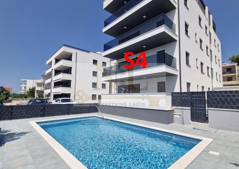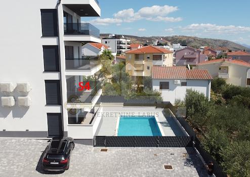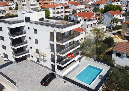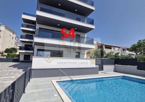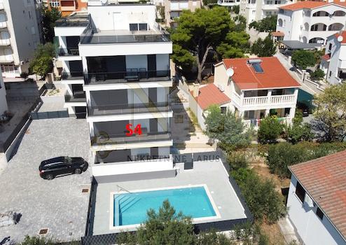 Wir verkaufen eine Wohnung S4 im ersten Stock mit Aufzug und Swimmingpool in außergewöhnlicher Lage, nur 100 Meter vom Meer und Strand entfernt, in Okrug Gornji.