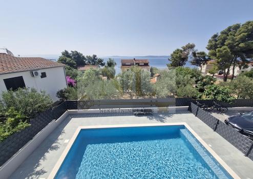 Das Gebäude befindet sich an der Südseite der Insel Čiovo in Okrug Gornji und bietet einen offenen Panoramablick auf die mitteldalmatinischen Inseln, ganztägige Sonne, einen großen Swimmingpool und einen Aufzug.