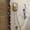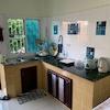 Wasserboiler Gasherd mit Dunstabzugshaube.