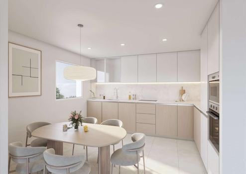 Jede Erdgeschosswohnung ist mit moderner Eleganz gestaltet und nach den höchsten Standards gebaut. Sie verfügt über einen hellen, offenen Wohnbereich, der nahtlos in eine voll ausgestattete Küche mit Geräten der Spitzenklasse übergeht. Die Erdgeschosswohnungen bieten drei geräumige Schlafzimmer mit Einbauschränken und zwei wunderschön ausgestattete Badezimmer, von denen eines en suite zum Hauptschlafzimmer liegt. Die großzügigen Privatgärten mit einer Größe von 33 bis 61 m² bieten den perfekten Rückzugsort im Freien mit Platz für Sonnenliegen, Terrassenmöbel und sogar Ihren eigenen privaten Pool.