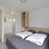 Wenn man zurück in den Flur geht, kommt man zu den beiden Schlafzimmern, beide mit eigenem Bad. Beide Schlafzimmer können 2 Personen beherbergen.