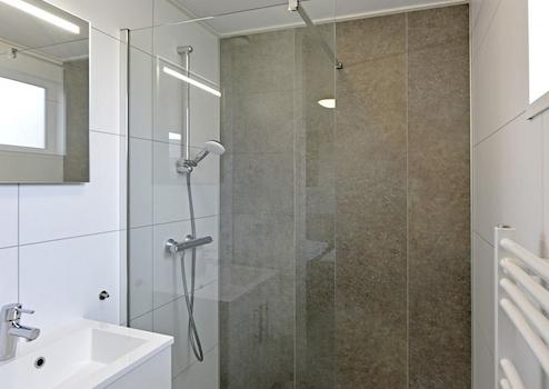 Die Bäder sind mit einer großen begehbaren Dusche, einem Waschbecken und einem luxuriösen Handtuchheizkörper ausgestattet.