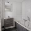 Badezimmer zum Hauptschlafzimmer gehörend, ausgestattet mit Badewanne, modernem Badmöbel und Handtuchheizkörper. Der Fliesenboden und die moderne Ausstattung vervollständigen diesen Raum.