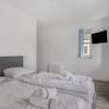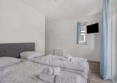 Schlafzimmer 4. Zweipersonen-Schlafzimmer mit getrennten Betten, viel Lichteinfall, Kleiderschrank und moderner Ausstattung.
