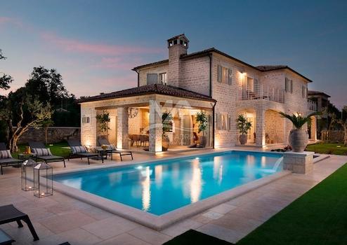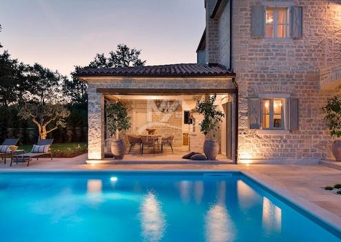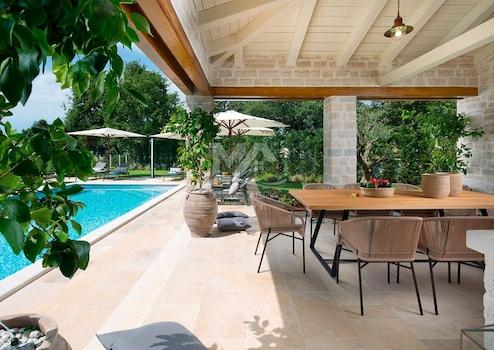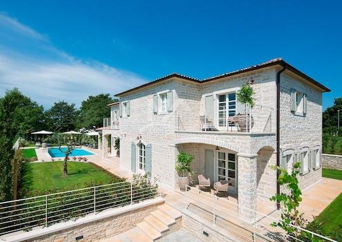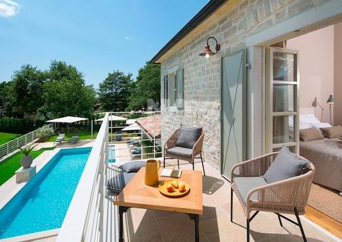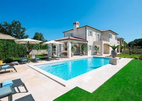 Die Villa befindet sich in einem Dorf mit 4 luxuriösen und von Designern eingerichteten Villen, jede mit eigenem Garten und eigenem Pool mit Hydromassage-Ecke, 16 km vom Meer im Lim-Kanal und 26 km vom malerischen Rovinj entfernt.