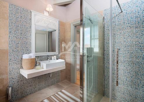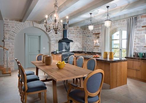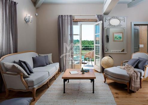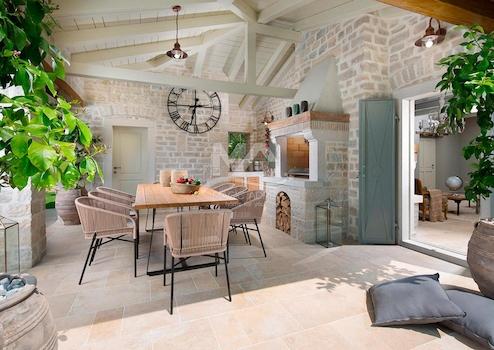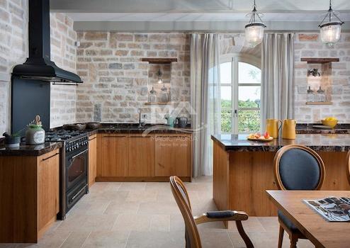 Die Villen sind aufwendig eingerichtet und mit rustikalen Möbeln im Schlossstil eingerichtet, die ihren Gästen ein sehr hohes Maß an Komfort bieten, während vom Balkon im Obergeschoss jedes Hauses aus ein wunderschöner Panoramablick auf das Meer besteht.
