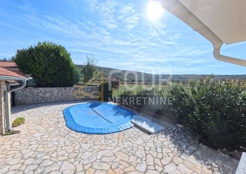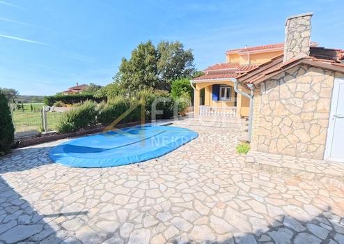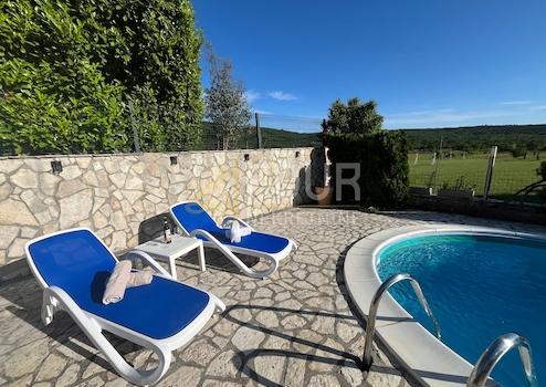 Zum Verkauf steht ein neu erbautes, freistehendes Haus mit Pool in ruhiger Lage, umgeben von viel Grün.