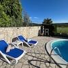 Das gepflegte Grundstück von 385 m² bietet einen Pool, einen Grillplatz und fünf gesicherte Parkplätze.
