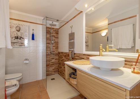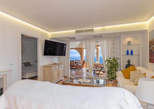 Ein besonderes Highlight ist die großzügige, überdachte Terrasse mit Meerblick – ideal für gemütliche Abende und lange Frühstücke mit Aussicht.