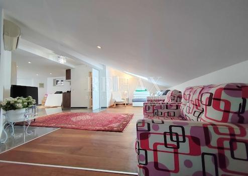 Im hohen Dachgeschoss gibt es ein zusätzliches Wohnzimmer, eine kleine Küche und ein weiteres Badezimmer. Die oberste Etage führt auf die Dachterrasse, ein perfekter Ort zum Entspannen und Genießen des Meer- und Stadtblicks.