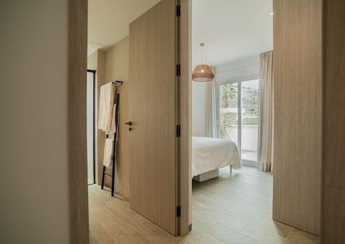Die Schlafzimmer verfügen über Einbauschränke für optimalen Stauraum, während die Badezimmer mit modernen Annehmlichkeiten wie ebenerdiger Dusche, Fußbodenheizung, Waschtisch und Spiegel ausgestattet sind. Die Klimaanlage sorgt das ganze Jahr über für Komfort.