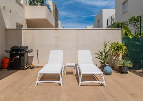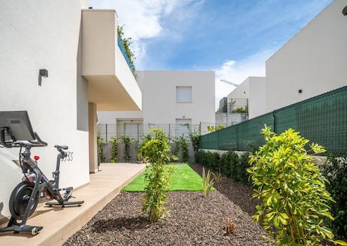 Die Bewohner von Mar Egeo genießen außerdem einen wunderschön angelegten Gemeinschaftsgarten mit mediterranen Pflanzen, einem Hängemattenbereich und einem großzügigen Swimmingpool - ein perfekter Ort zum Entspannen unter der spanischen Sonne.