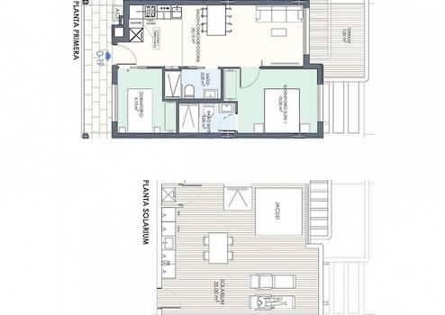 Eine neue und hochwertige Anlage mit Apartments, die 2 Schlafzimmer/2 Badezimmer bieten, wobei die oberste Etage über eine Dachterrasse verfügt, während das Erdgeschoss über einen eigenen privaten Garten verfügt und alle Immobilien aus den hochwertigsten Materialien gebaut sind, um Ihnen ein Gefühl von Luxus zu vermitteln.