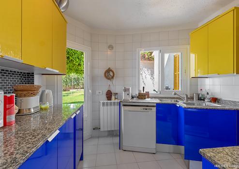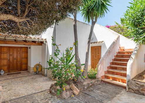Der Außenbereich dieser Villa ist ein echtes Highlight: Ein liebevoll angelegter Garten, ein großzügiger Poolbereich, verschiedene Terrassen – teils überdacht – sowie eine Außenküche mit BBQ-Zone laden zum Entspannen und Genießen ein. Hier lassen sich die spektakulären Sonnenuntergänge mit Blick auf das Mittelmeer in absoluter Privatsphäre erleben.